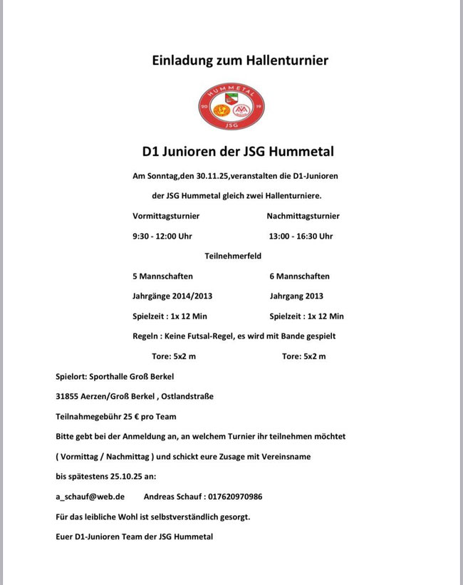 Am gestrigen Freitag 03.10.2025 fanden auf dem Sportgelände des TSV Klein Berkel´s zwei Turniere der D Jugend der JSG Hummetal III und der C Jugend von JSG Hummetal II statt.