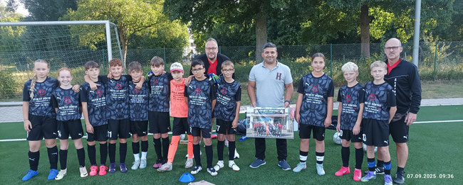 Mit großer Freude und Stolz tragen unsere Spielerinnen und Spieler die neuen Trikots auf dem Platz. Ein riesiges Dankeschön an Herrn Adirbelli für die großzügige