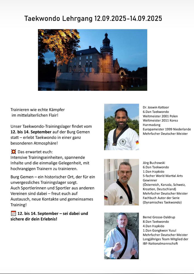Am 6. April 2025 war Songs Taekwondo-Schule in Münster Gastgeber des renommierten Taekwondo-Förder-Turniers des Deutschen Taekwondo Bundes (DTB). Unter der technischen Leitung von Großmeister